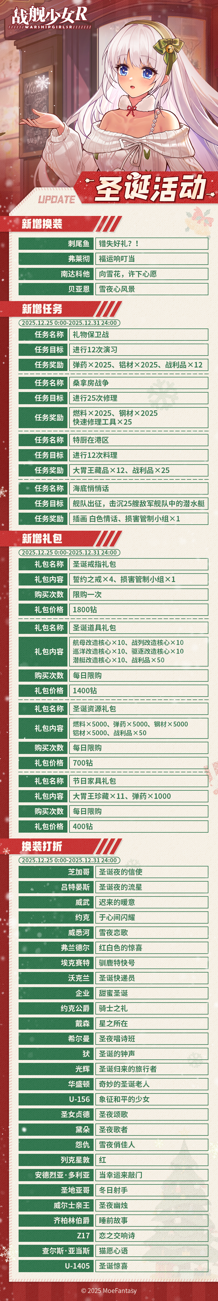 【更新时间】2025年12月24日10:00~14:00 【更新方式】不停机更新 【更新范围】全服 【更新内容】游戏内容更新